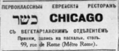 ПЕРВОКЛАССНЫЙ ЕВРЕЙСКИЙ РЕСТОРАН CHICAGO С ВЕГЕТАРИНСКИМ ОТДЕЛЕНИЕМ #въ_рекламѣ