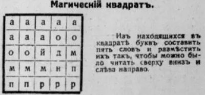 Магический квадрат. Из находящихся в квадрате букв составить пять слов и разместить их так, чтобы можно было читать сверху вниз и слева направо. #юморъ_шарады