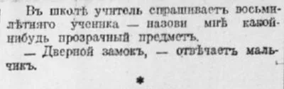 В школе учитель спрашивает восьмилетнего ученика — назови мне какой-нибудь прозрачный предмет. — Дверной замок, — отвечает мальчик. #юморъ_шарады