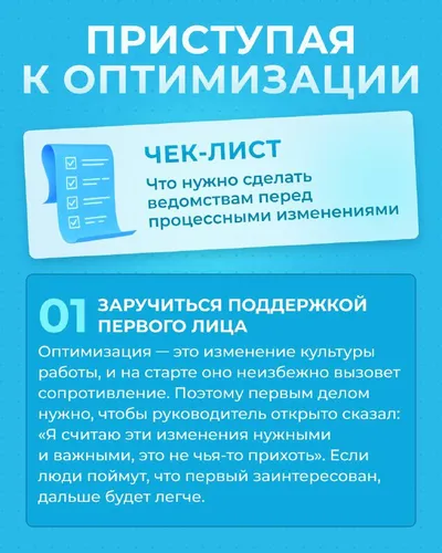 ✍ Не бросайтесь менять всё сразу: приступая к оптимизации Сегодня делимся одним из ключевых фрагментов пособия М.В. Паратунова и Ю.Х. Попковой «Процессное управление в органах публичной власти» – о т