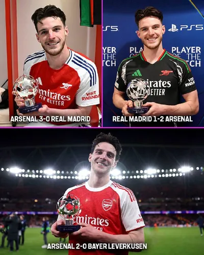 🤯🏴 Райс был признан ЛУЧШИМ игроком во всех трёх последних победных матчах «Арсенала» в плей-офф ЛЧ: ✅ «Арсенал» 3:0 «Реал» ✅ «Реал» 1:2 «Арсенал» ✅ «Арсенал» 2:0 «Байер» 🤩 Читай все н