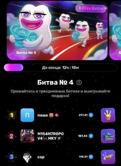 🤑 12 часов до завершения трехдневной битвы Voodoo Doll 📍 на третьем месте сейчас забирают с депозита в 6 TON 😂 Остальные ценные подарки за еще меньшие копейки! Советуем проверить лидерборд 🤓