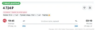 Хургада - Москва с вылетом завтра — за 4,7 тыс. руб. в одну сторону (Уральские авиалинии, прямой рейс, багаж включен) → https://100500miles.ru/f/HRG2303MOW1 👉 Источник: Чартер Горит!