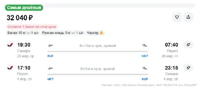 🇹🇭 Самара - Пхукет с вылетом сегодня — за 32 тыс. руб. в обе стороны (прямые рейсы с Azur Air, с багажом) → https://100500miles.ru/f/KUF2503HKT04041 👉 Источник: Чартер Горит!