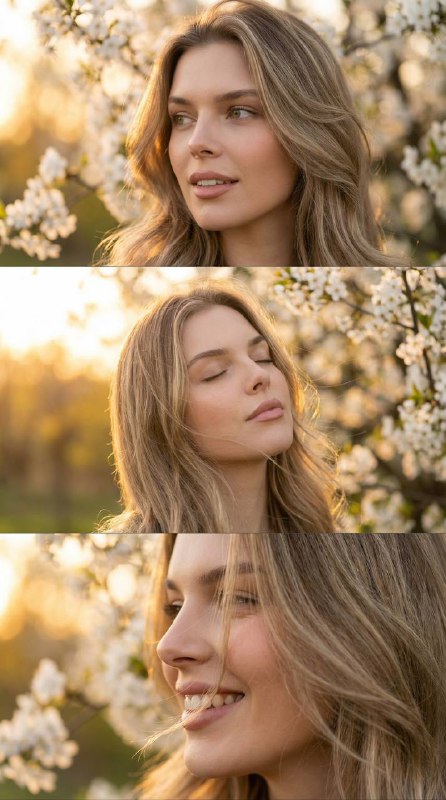 Нежный весенний триптих 🤍 1️⃣Открываем @GHATGPT_BOT 2️⃣Создать картинку → Nano Banana Pro Редактор → вставляем промт со своим текстом: 3️⃣Добавляем свое фото, где хорошо видно лицо и промпт: СТР