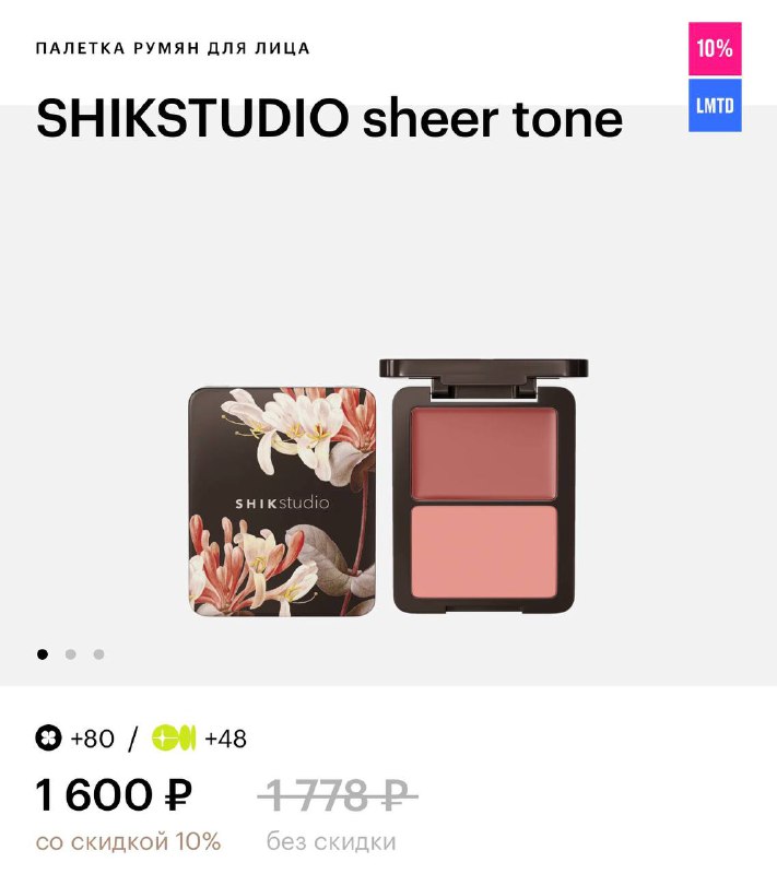Из румян, которые мы можем заказать здесь и сейчас: интересная новинка в весенней коллекции SHIKSTUDIO 🫓 Дизайн палеток очень красивый: 01 более персиковая, 02 более розовая, я себе выбрала 01 🤭 Б