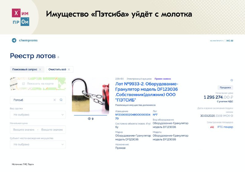 📄 Имущество омского производителя полиэтиленовых труб компании «Пэтсиб» продадут с торгов. Аукцион проведут на основании постановления судебного пристава-исполнителя о передаче имущества на торги, ук