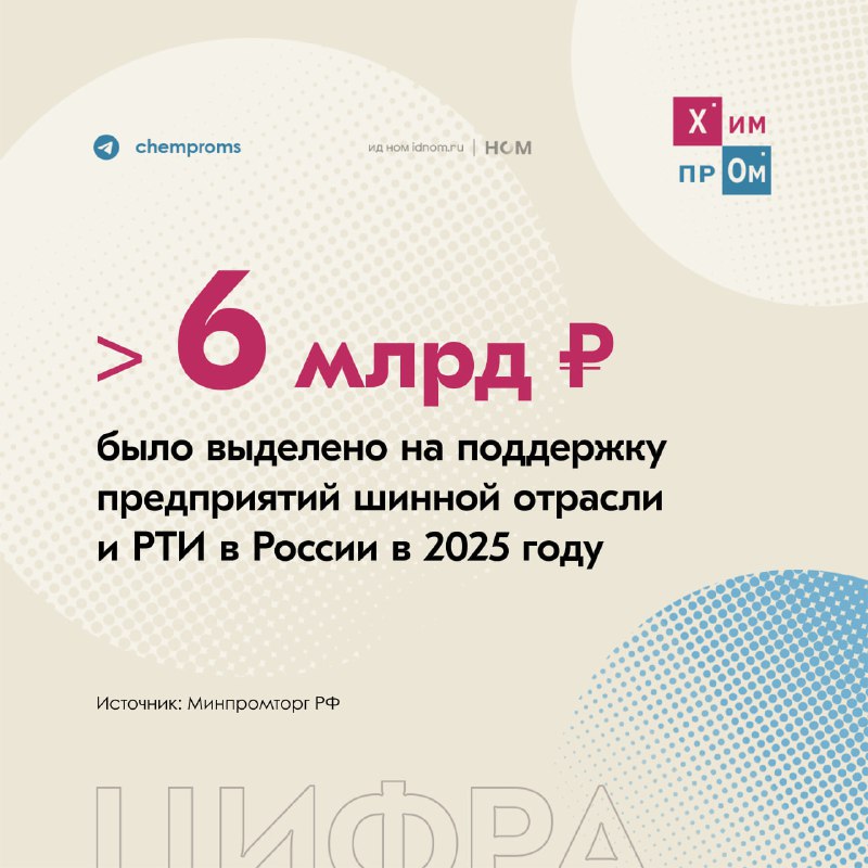 🧪 Такие данные привёл Минпромторг на выставке «Шины, РТИ и каучуки — 2026». Из указанной суммы 3,5 млрд рублей были предоставлены в рамках кластерной инвестиционной платформы и ещё более 2,7 млрд руб