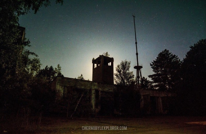 Пожарная часть города Припять под покровом ночи. Фото: Chernobyl Explorer