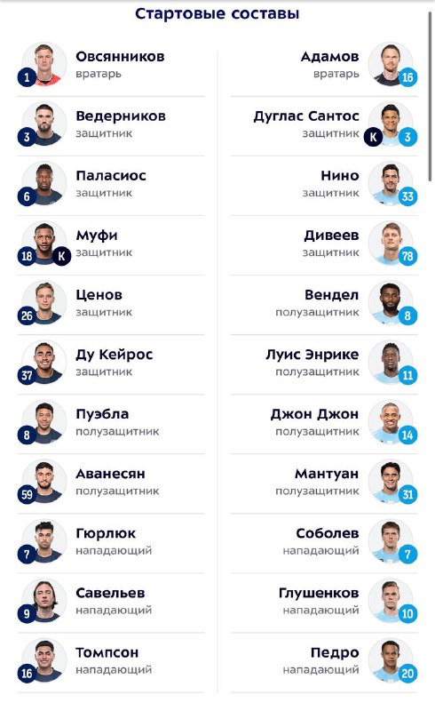 Вот это состав у «Зенита». Дуран переместился в запас, а его место занял плохой мальчик Соболев. После гола «Балтике» вернулся в основу и Луис Энрике. Глушенков — «десятка», Джон Джон слева. Но само