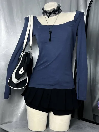 blue longsleeve широкий квадратный вырез, посадка по фигуре приятный тёмный голубо-небесный(?) цвет S 🌟🎀🤍🐝🐝 продано ✫彡