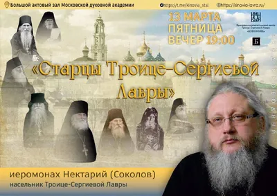 Открытая лекция в Московской духовной академии В эту пятницу, 13 марта, в Большом актовом зале МДА (в здании Царских чертогов) состоится лекция на тему: "Старцы Троице-Сергиевой Лавры". Расскажет на