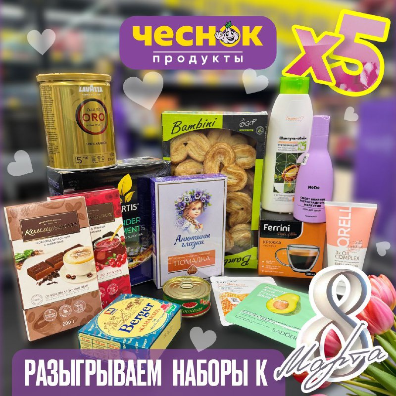 🌷 ПОДАРКИ ДЛЯ ЛЮБИМЫХ ЖЕНЩИН 🌷 Готовьтесь к Международному женскому дню вместе с магазинами «Чеснок»! Мы подготовили варианты наборов д
