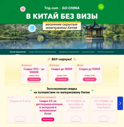 🛎 Сегодня в 12:00 мск на Трипкоме новая акция по Китаю! Как и всегда, лучше чуть заранее зайти на страницу акции (вот ссылка) и выбрать то, что действительно нужно. И обратите внимание, что часть пр