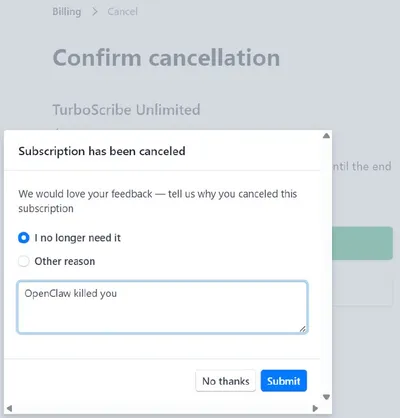Отменил очередную подписку за 120 долларов. Потому что этот сервис транскрибации мне больше не нужен. Расшифровка видео в текст (транскрибация) теперь просто одна из стандартных функций моего ассисте