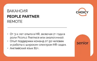 People partner #remote Цифровое агентство, которое помогает ориентироваться в алгоритмической рекламе. 👉 Узнать подробнее и откликнуться Подпишись 🔸 @choicy_work