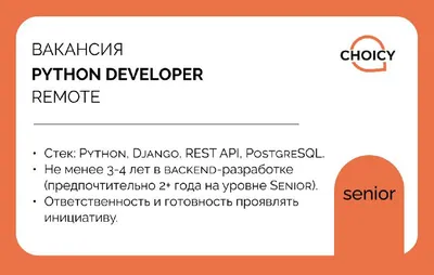 Python developer #remote Международный стартап в сфере профессионального нетворкинга. 👉 Узнать подробнее и откликнуться Подпишись 🔸 @choicy_work