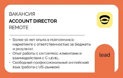 Account Director (Performance marketing) #remote Plurio — платформа на основе искусственного интеллекта для специалистов по контекстной рекламе. 👉 Узнать подробнее и откликнуться Подпишись 🔸 @cho