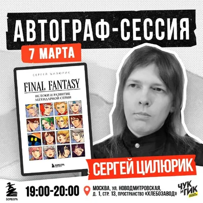 ⚔️ ПЕРВАЯ ВСТРЕЧА ПО ФИНАЛЬНОЙ ФАНТАЗИИ! 🧙 Анонсируем презентацию книги «Final Fantasy: Истоки и развитие легендарной серии» и автограф-сессию с ее автором — Сергеем Цилюриком! Массивная, а главное
