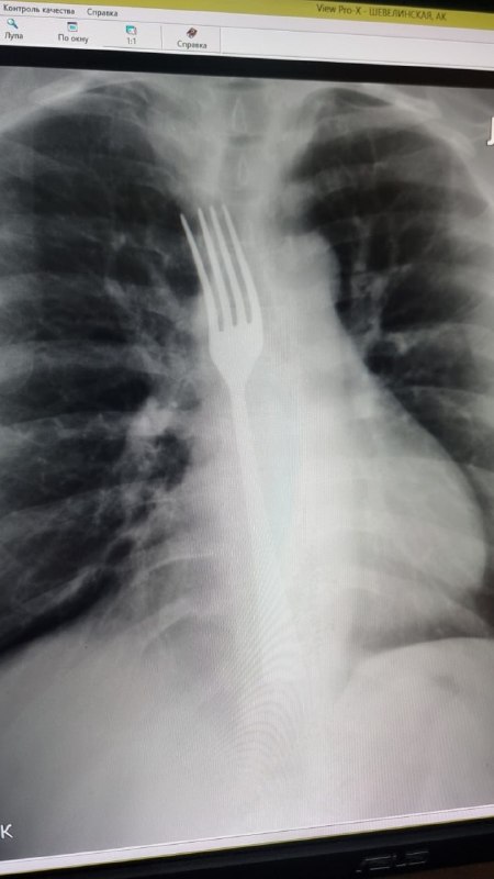 Девушка случайно проглотила вилку, пытаясь вызвать рвоту. Женщина столкнулась с проблемой – «встал желудок». Не найдя ничего лучше, она попыталась вызвать рвоту вилкой. Пара неловких движений – и при