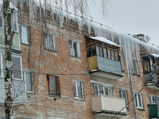 На ул.Труда, д.27 вот такие 3-метровые сосульки. Управляющая компания ничего не предпринимает. Телефон, указанный на подъезде дома для приема заявок по уборке крыши, не отвечает. Просто не берут трубк