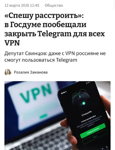 ⚡️Telegram НЕ БУДЕТ работать в России с VPN — заявил депутат Свинцов. Он уверен, что РКН получит контроль над интернет-трафиком, поэтому Telegram будут резать на уровне сети. VPN тоже не помогут — ме