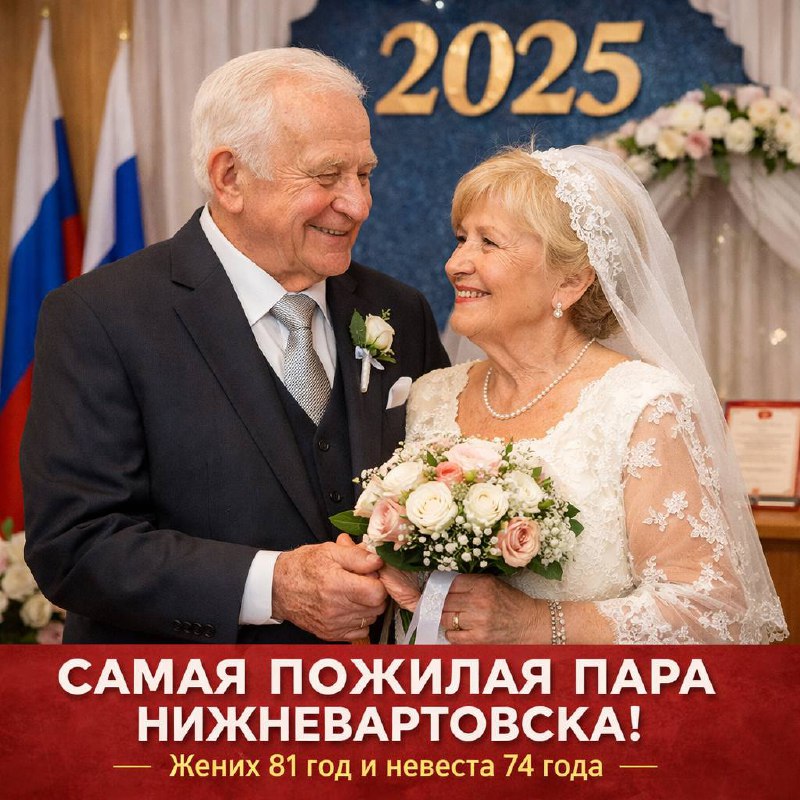 👰🏼🤵🏼♂️В Нижневартовске самой пожилой парой, поженившейся в 2025 году, стали 81-летний жених и 74-летняя невеста. В городском ЗАГСе также рассказали, что многие пары выбирают дату свадьбы по особ
