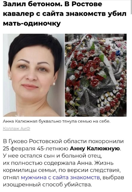 😱 ТРЭШАК ИЗ ГУКОВО: женщину убили и забетонировали в подвале на первом свидании! 45-летняя Анна Калюжная одна содержала 18-летнего сына и 65-летнего отца после двух инсультов. Бывший муж оказался а