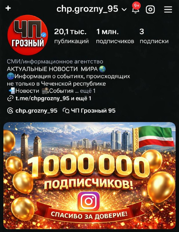 Новости и СМИОфициальный канал ЧП Грозный 95✅ 📱Новости о событиях происходящих не только в Чеченской республике! Есть интересный контент? отправляй: @ChpGrozny_95_bot РЕКЛАМА: @ChpGrozny_95_bot НАШ ЧАТ: @chpgrozny95shat ПРАВИЛА ЧАТА: @pravila_chpgrozny_95