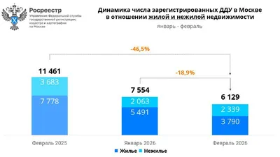 🔽 Итак, хуже продажи у московских застройщиков были только в мае 2020 Наконец подъехали официальные данные Росреестра о регистрациях ДДУ за февраль. 6129 сделок, из них 3790 — с жильем. Таких цифр