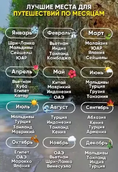 Лучшие направления для путешествий по месяцам. ✈️👉 Подберите для себя дешёвый, горящий тур Реклама. ООО «Тревел Технологии». ИНН 7731340252 💥Удивительные путешествия -