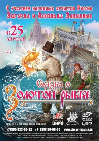 БРАТЬЯ ЗАПАШНЫЕ и Большой Московский цирк представит зрителям Луганска невероятный спектакль «Сказка о золотой рыбке», созданный по мотивам знаменитого произведения Александра Сергеевича Пушкина. Эт