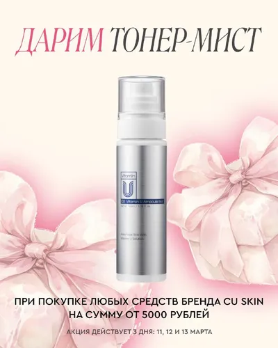 Дарим омолаживающий тонер-мист от CU SKIN при покупке средств бр��нда на сумму от 5000 рублей ✏️ Выбирайте любимые средства на сайте или в розничных магазинах и получайте потрясающий тонер-мист в под