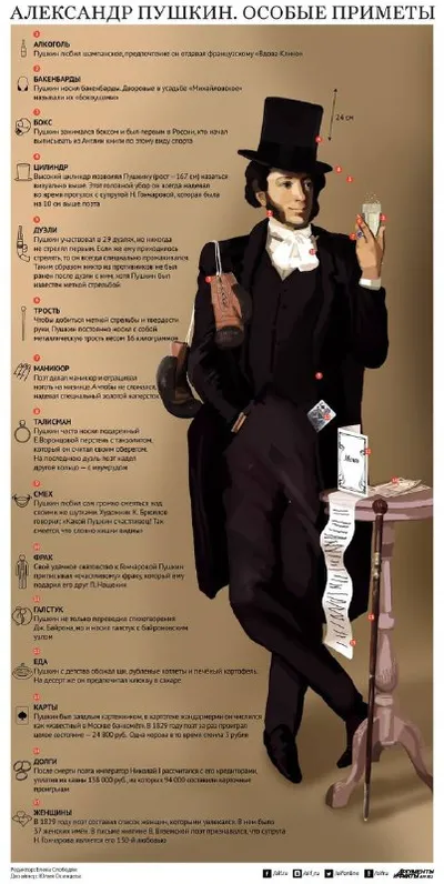 Классики с особыми приметами Друзья, наткнулись на интересный проект «Особые приметы». Проект рассказывает об известных личностях в формате инфографики. В том числе и о русских классиках. Всё очень