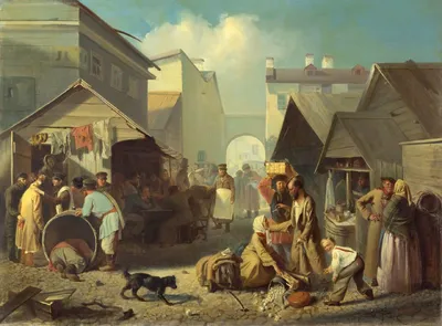 Волков Адриан Маркович (1827 - 1873) «Обжорный ряд в Петербурге», (1858) Холст, масло 96 х 129,3 см Государственная Третьяковская галерея, (Москва) Картина Адриана Волкова переносит зрителя в шумный