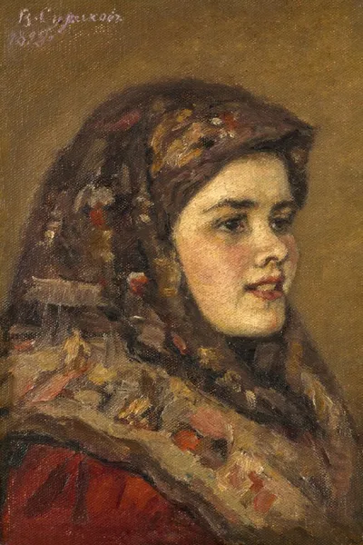 Суриков Василий Иванович (1848 - 1916) «Казачка Вера Прокофьевна Дьяченко», (1898) Холст, масло 28,7 x 19,5 см Государственная Третьяковская галерея, (Москва) Этот небольшой портрет связан с важной