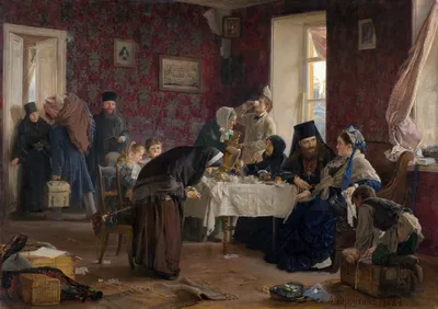Корзухин Алексей Иванович (1835-1894) «В монастырской гостинице», (1882) Холст, масло 106,7 х 150,2 см Государственная Третьяковская галерея, (Москва) Выходец из семьи заводских мастеровых, Корзухин