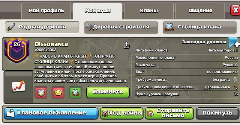 ⭐️ НАБОР В КЛАН DISSONANCE ОТКРЫТ ⭐️ ⭐️ ЗАПУСК ЛВК ЗАВТРА - УСПЕЙ ВСТУПИТЬ В КЛАН! ☄️ ТОП 7 РОССИИ ПО СТОЛИЦЕ КЛАНА ☄️ ТОП 130 В МИРОВОМ РЕЙТИНГЕ ПО СТОЛИЦЕ КЛАНА 🔜Легендарная лига в столице клана