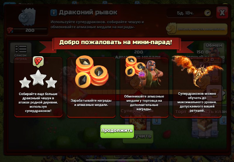 🛡 Новое событие: МИНИ-ПАРАД в Clash of Clans 📆 Событие пройдет с 07.03 по 14.03, доступно для ТХ6+ 📋 Собирайте драконью чешую в атаках в родной деревне ➡️ зарабатывайте алмазные медали ➡️ обменив