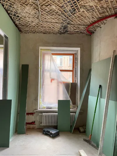 Моя римская империя Осталось: - дошить потолок - сделать стены - восстановить лепнину - установить печь - плиточные работы - установка отреставрированной столярки - паркет - мебель Наверное 50% п