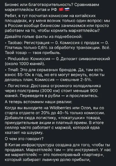 Прислали в предложку: Ребят, я тут посчитал комиссии на китайских площадках, и у меня возник только один вопрос: мы в России вообще бизнесом занимаемся или просто работаем на то, чтобы кормить маркет