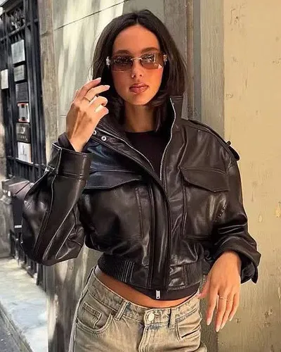Представляем женскую кожаную куртку-бомбер — сочетание классического стиля и современных трендов. Эта модель станет изюминкой вашего гардероба: Материал: высококачественная кожа, приятная на ощупь и