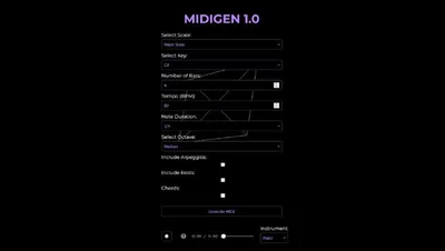 MIDIGEN - бесплатный генератор AI MIDI, который позволяет легко генерировать короткие MIDI-мелодии и аудиобайты Этот инструмент может генерировать оригинальные мелодии на основе настраиваемых парамет