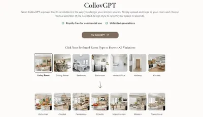 CollovGPT - инструмент дизайна интерьера с искусственным интеллектом, который можно использовать для создания и тестирования различных стилей и дизайнов комнат Чтобы использовать инструмент, просто з