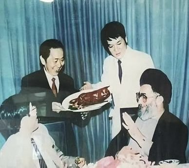 Али Хаменеи (1939-2026) ел жареную утку в пекинском ресторане «Цюаньцзюдэ» (全聚德) во время своего визита в Китай в мае 1989 года. В июне 1989 скончался аятолла Хомейни, и Хаменеи стал верховным лидер