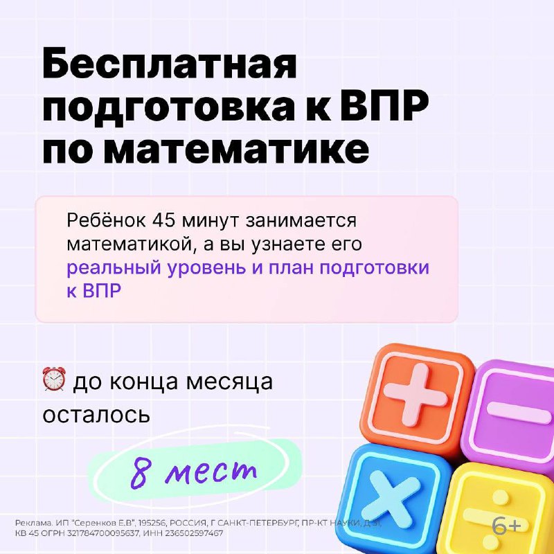 Боитесь, что ребенок не сдаст ВПР? Проверьте его знания на пробном уроке бесплатно. До экзаменов — 2,5 месяца, но по статистике 58% школьников получают за ВПР тройки и двойки. Онлайн-школа «Мам, я с