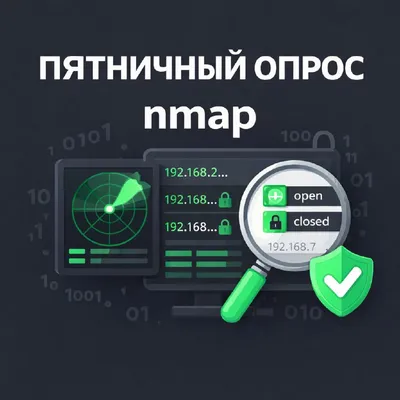 🔁 Пятничный опрос Сегодня проверим, насколько ты ориентируешься в nmap Подсказка: nmap - это утилита для сканирования сети, которая используется для обнаружения хостов, открытых портов, сервисов и