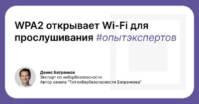 WPA2 открывает Wi-Fi для прослушивания #опытэкспертов ✏️ Материал подготовил Денис Батранков, эксперт по кибербезопасности и автор Telegram-канала «Топ кибербезопасности Батранкова». WPA2-PSK (Pre