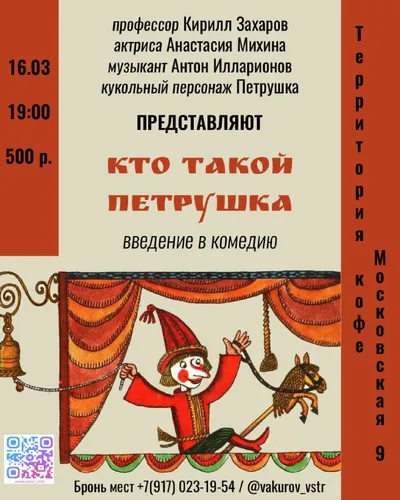 16 марта. 19.00. Территория кофе, Московская, 9. Вакуровские встречи. Лекция о национальном кукольном театре и Петрушке в сопровождении балалайки при участии... Петрушки. И настоящее петрушечное пре
