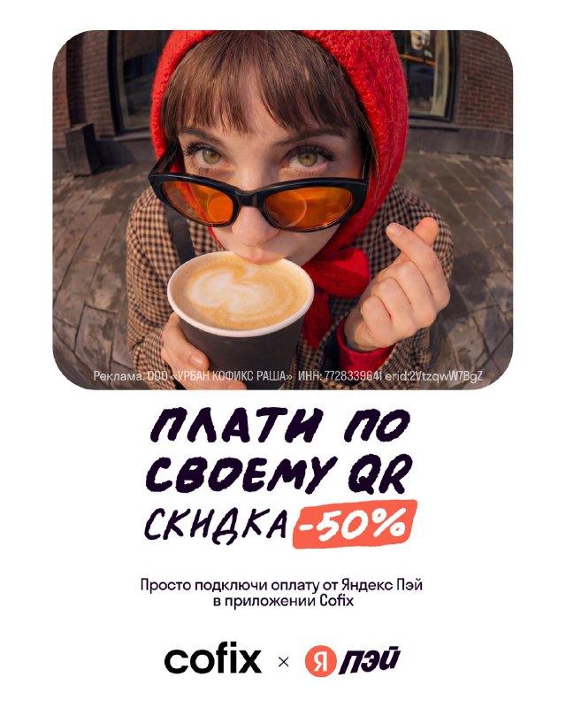 Твои любимые позиции из меню со скидкой 50% — повод сегодня завернуть в Cofix по пути. Вот что нужно сделать: 1️⃣ включить оплату от Яндекс Пэй на главной странице приложения Cofix 2️⃣ активировать о